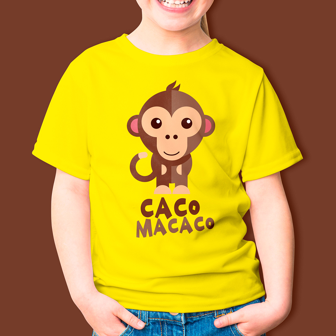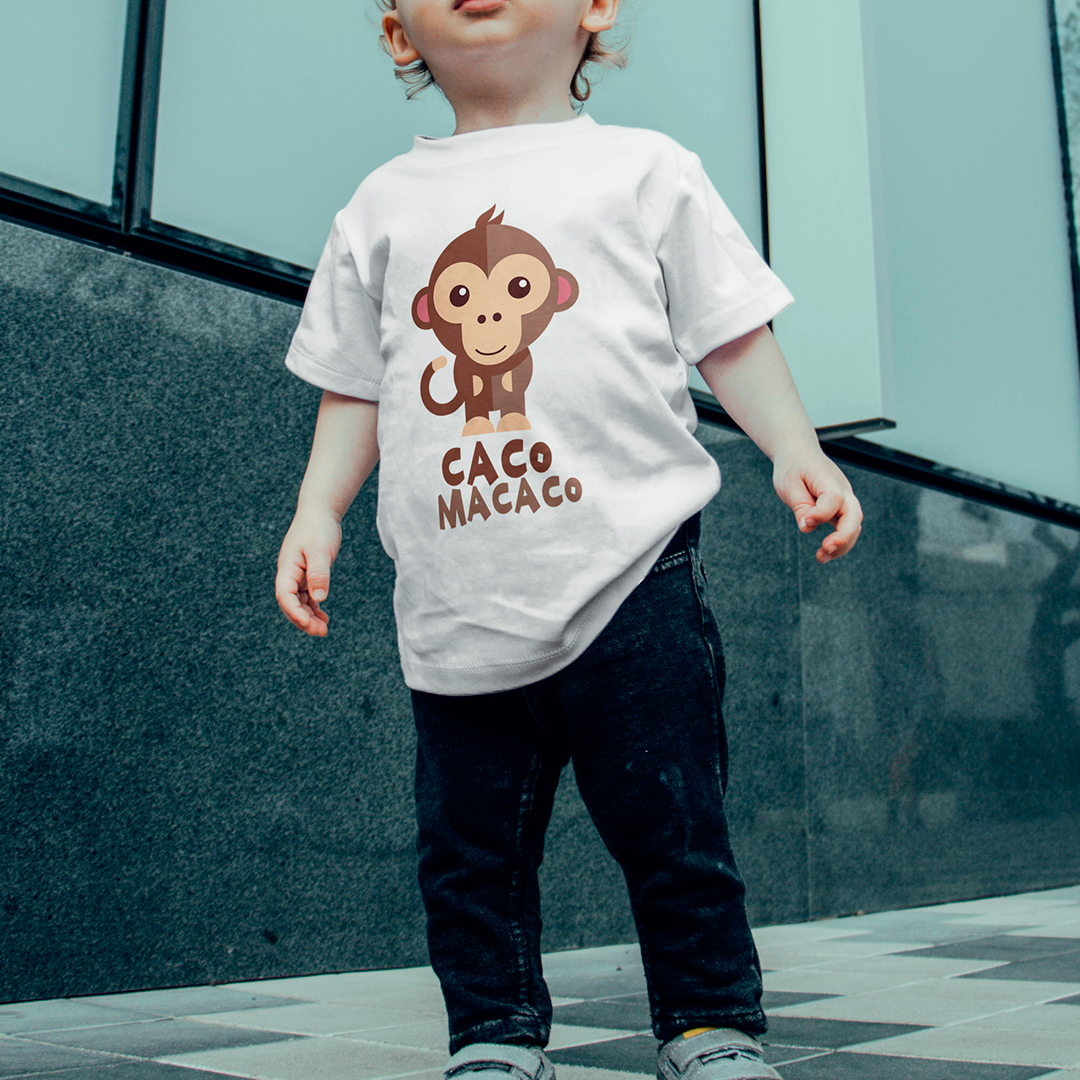 Seu filho vai estourar o fofurômetro com esta camiseta do macaquinho chamado Caco Macaco.