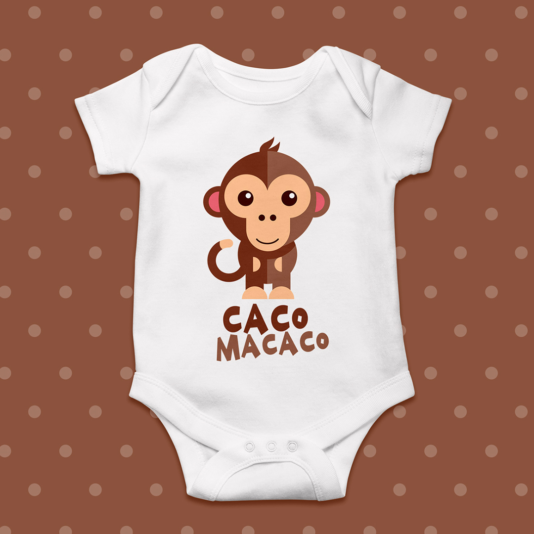 Seu bebê vai estourar o fofurômetro com este body do macaquinho chamado de Caco Macaco.