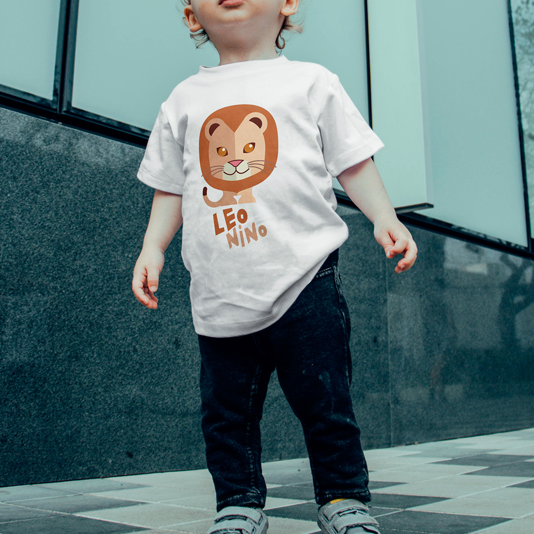 Seu filho vai estourar o fofurômetro com esta camiseta do leãozinho chamado Leo Nino.
